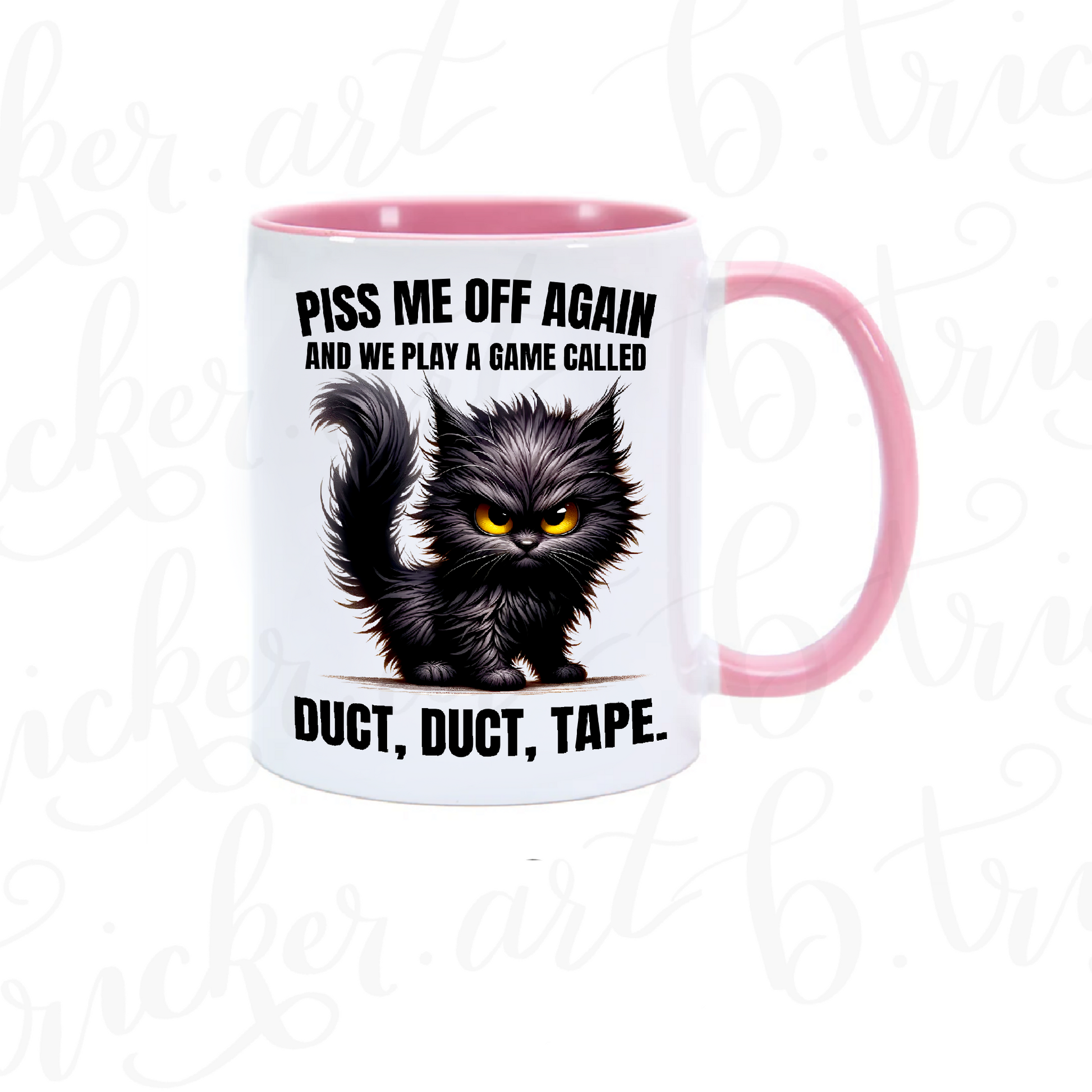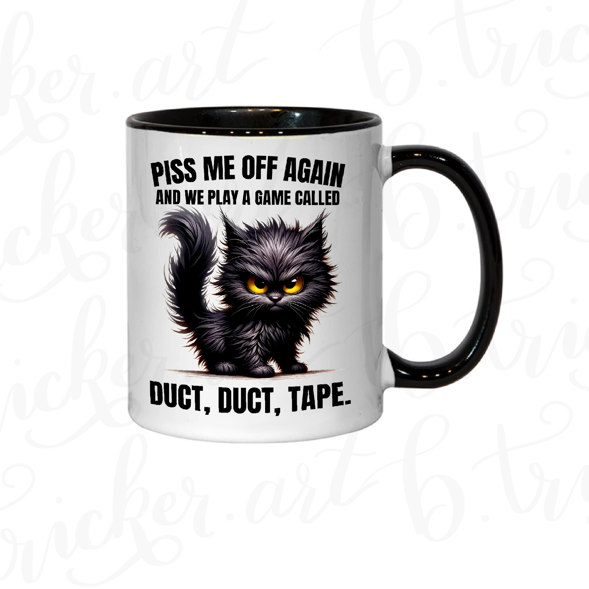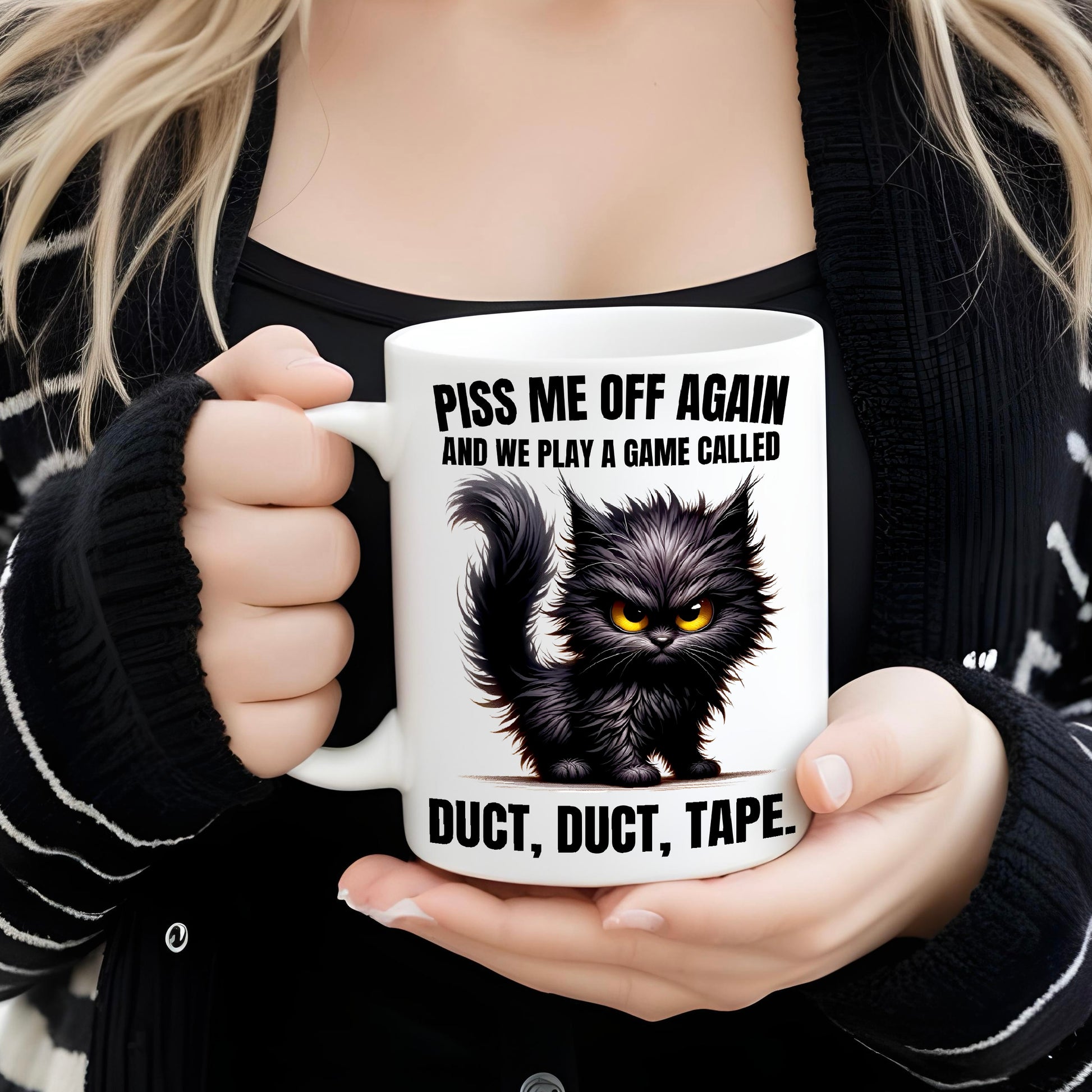 Rude Funny Mug | “Piss Me Off Again – Duct, Duct, Tape” Angry Cat 11oz Coffee Cup | Sarcastic Gothic Gift
