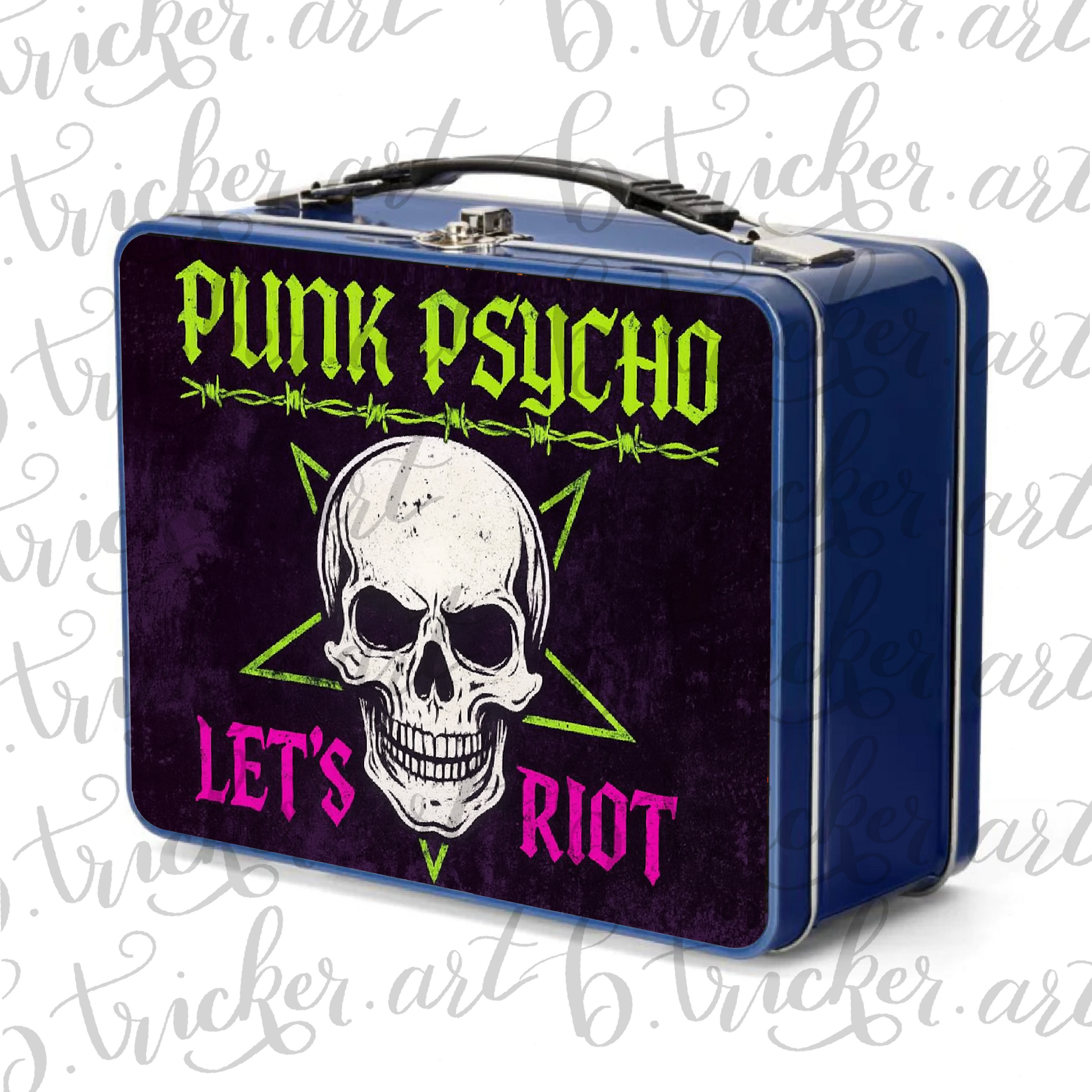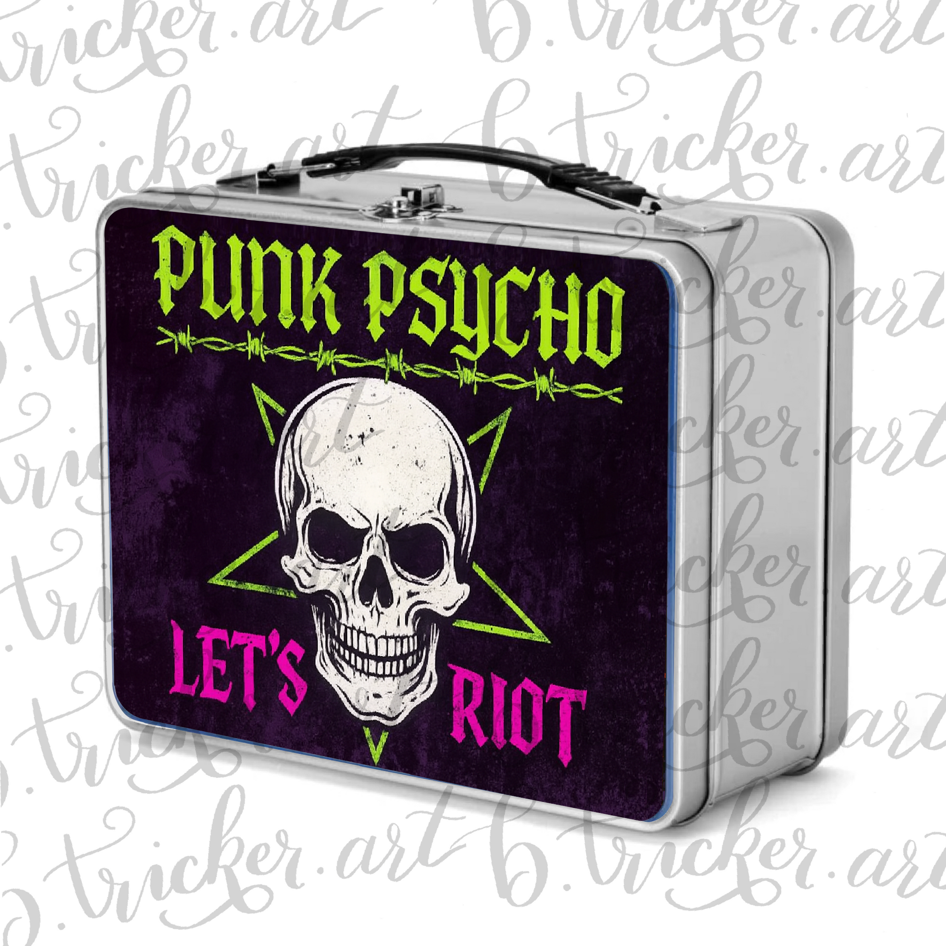 Fuel your attitude and your appetite with this bold Punk Psycho Skull Lunchbox – designed for rebels, misfits, and anyone who's dead serious about lunchtime. Featuring a striking skull illustration, electric barbed wire, and the unapologetic slogan “Let’s Riot,” this is the ultimate gothic punk lunch box for school, work, festivals, or gift-giving.